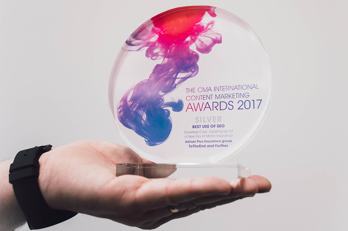 Last Tuesday we attended The International Content Marketing Awards at The Roundhouse in Camden and we’re over the moon to announce we’ve won Silver for Best Use of SEO for our work on Adrian Flux’s Driverless Car Insurance Campaign.