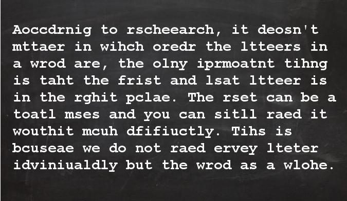 As the picture above shows, it doesn’t matter how we spell a word or a group of words forming a sentence. As long as we use the correct letters in any random order, without too much trouble, our very clever brains will decipher the twaddle and make good sense of it.